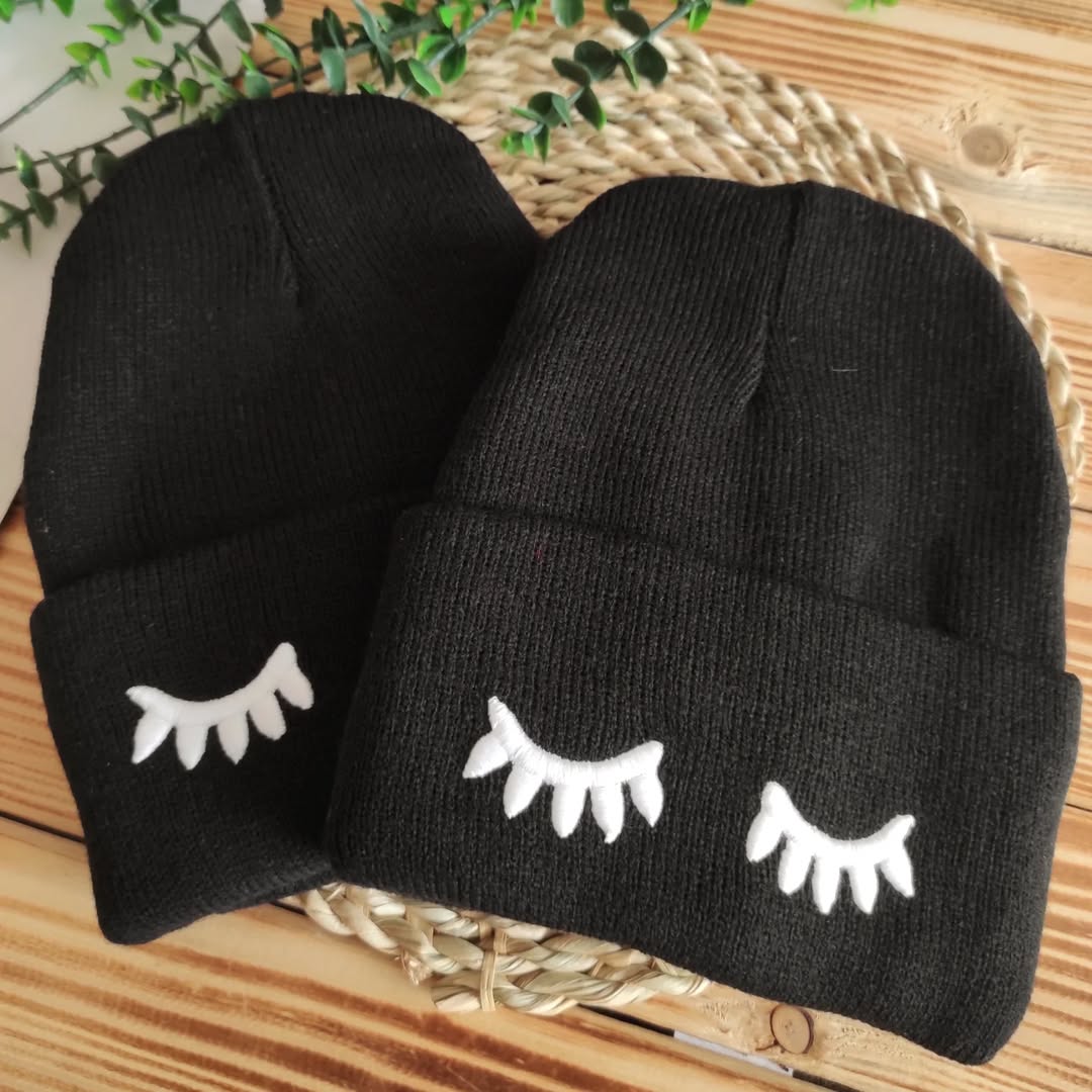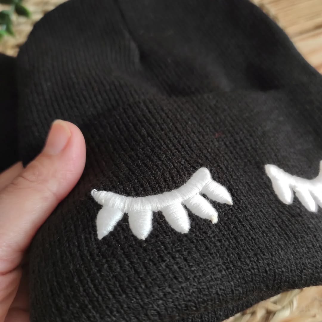 کلاه بافت دولایه گرم پاییزه پلک مشکی با گلدوزی پر تراکم مناسب 3سال تا مامان وباباها. جنس بافت نخ پنبه باکیفیت دولایه و گرم ودوطرف کش.