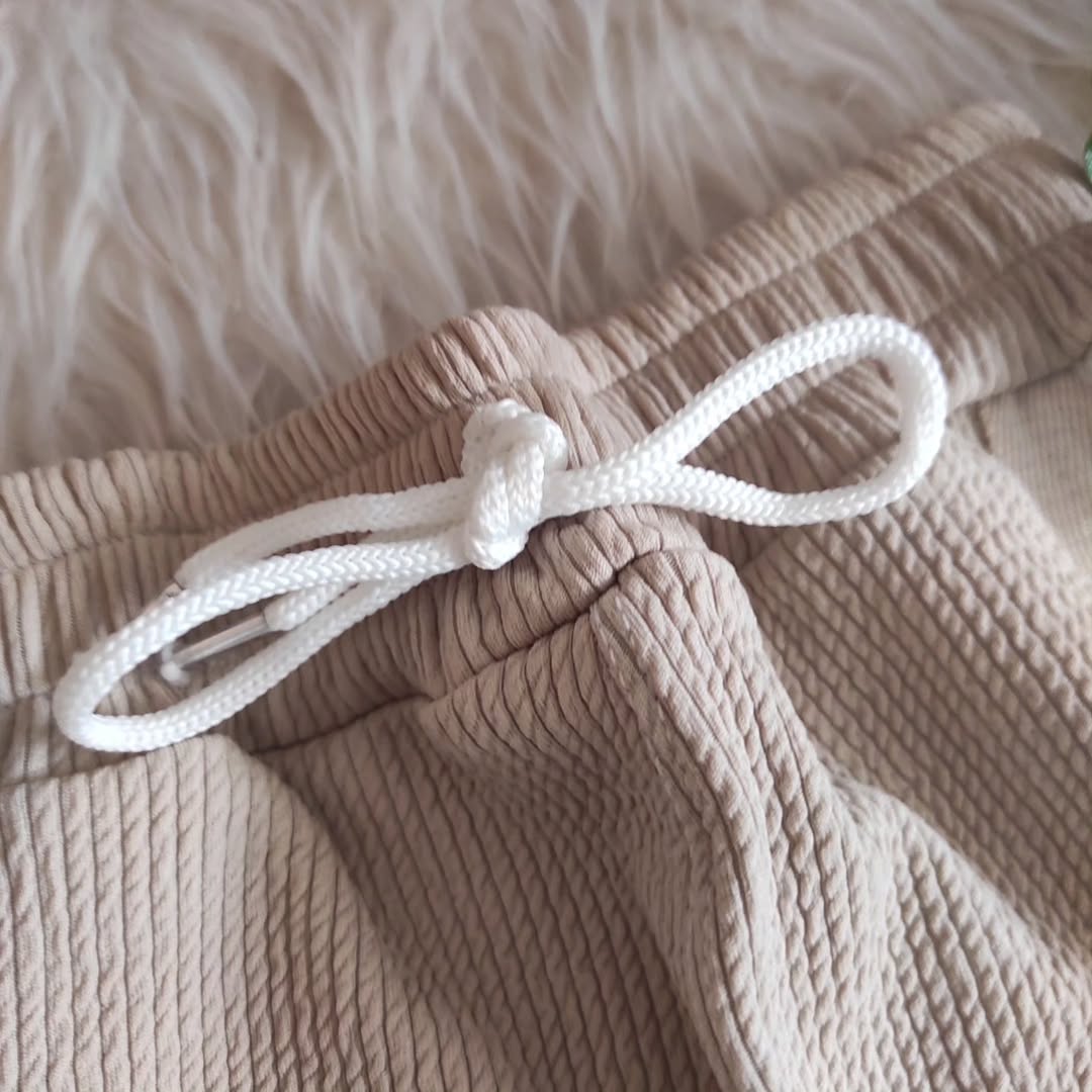 جنس بیسکویتی. اندازها ی دقیق سایز ۶۵ قد شلوار ۶۵/ فاق ۲۴، سایز ۷۵ قد شلوار ۷۵/ فاق ۲۷، سایز ۸۵ قد شلوار ۸۶/ فاق ۲۹.