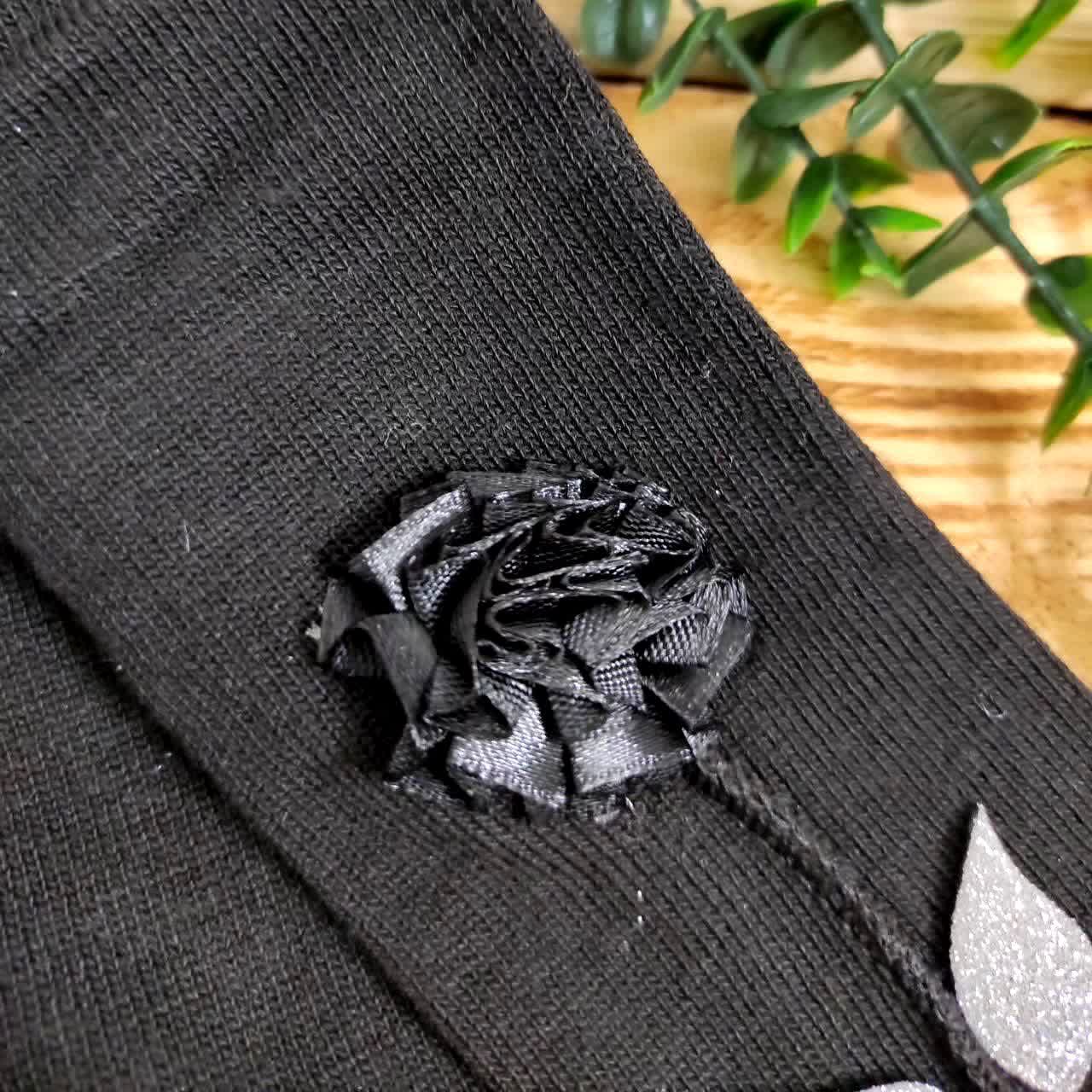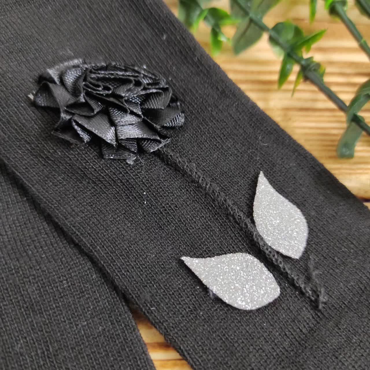 جورابشلواری مشکی دخترانه برگی کد 1187