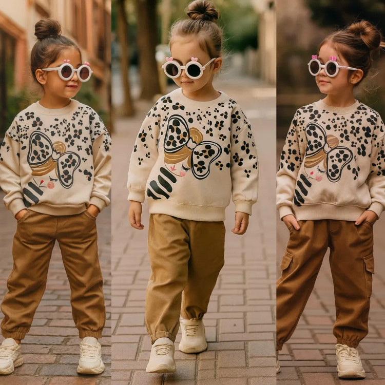 ست دورس دختر پلنگی با شلوار کتان سایز50