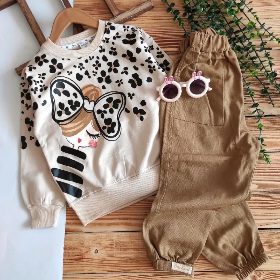 ست دورس دختر پلنگی با شلوار کتان سایز50