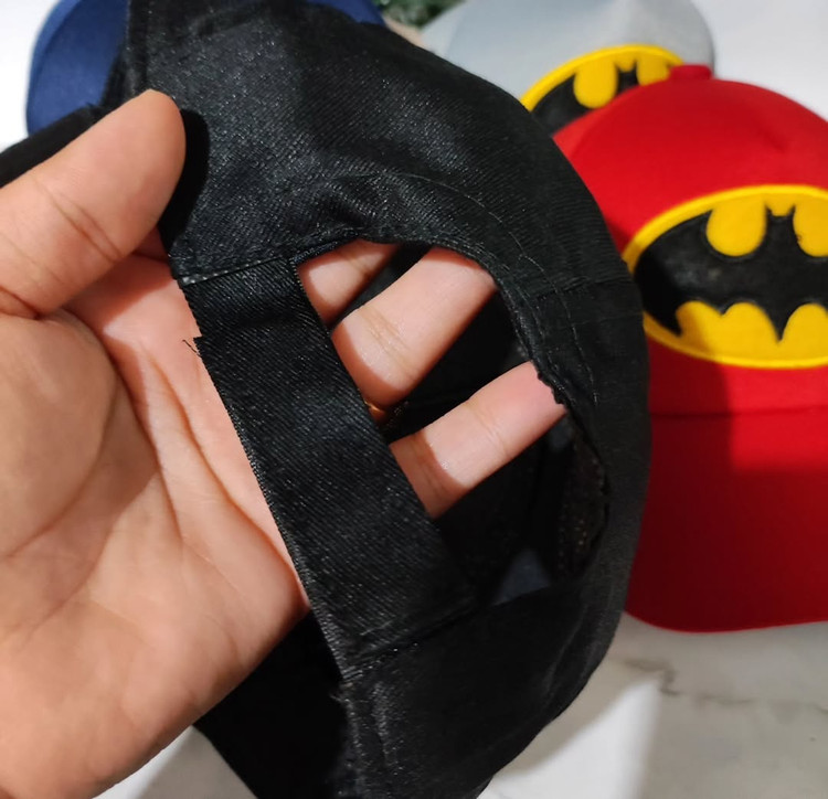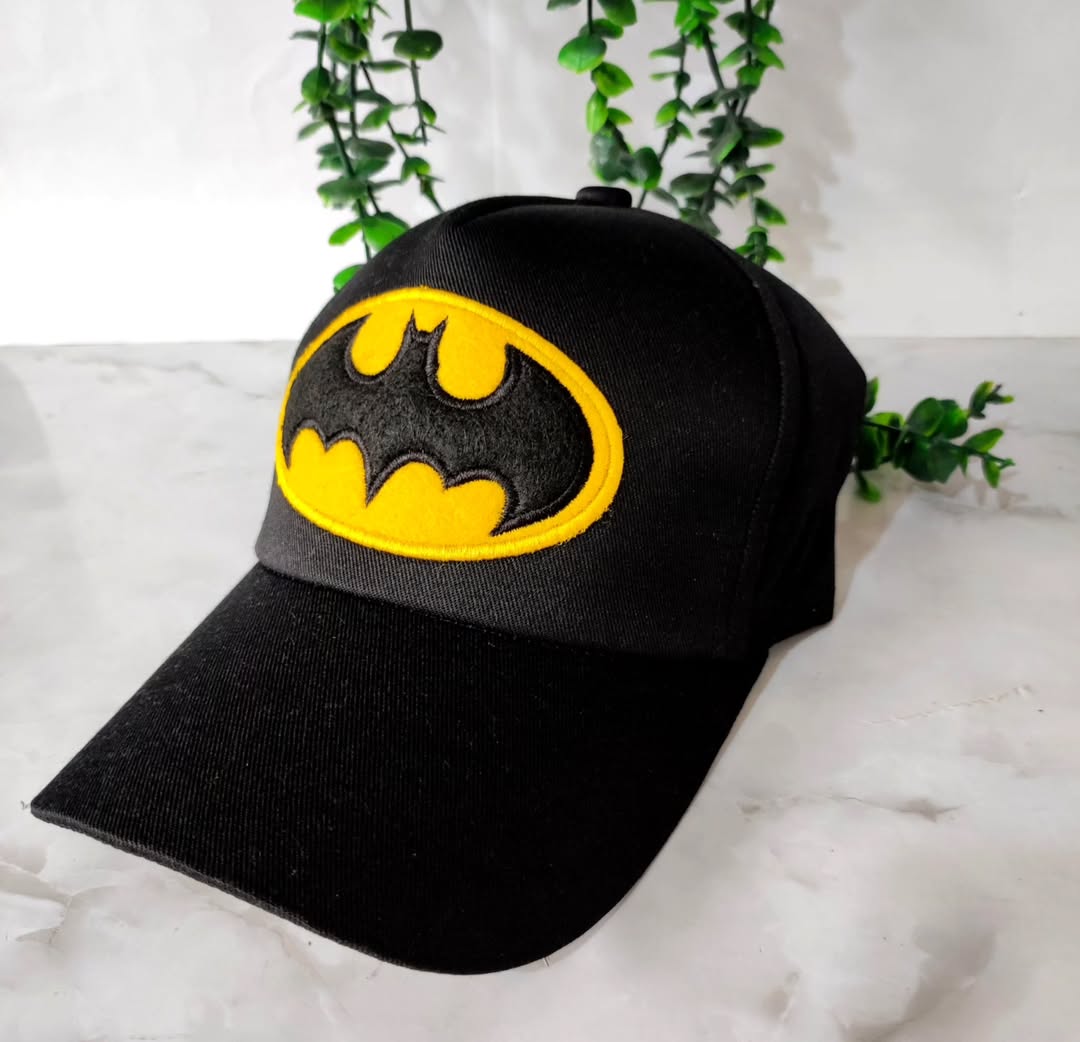 کلاه لبه دار بتمن با طرح گلدوزی شده. این کلاه با قابلیت تنظیم دور سر و شست و شو عرضه میشود.